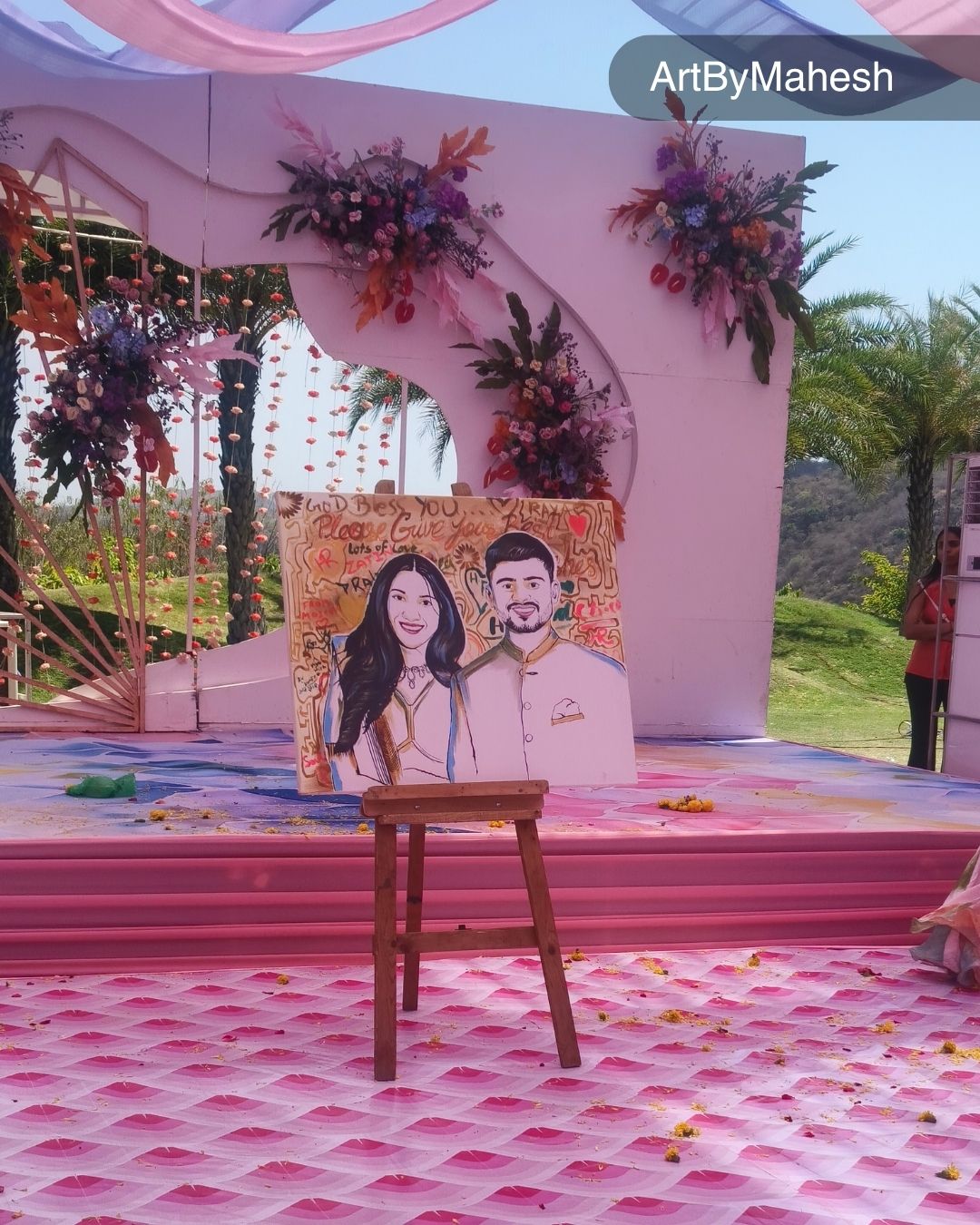 Renowned wedding artist Mahesh Kumawat is known for creating detailed magic portrait artworks that match wedding themes, décor styles and bride-groom concepts. His professional artistic approach makes him a preferred choice for luxury weddings and grand celebrations.