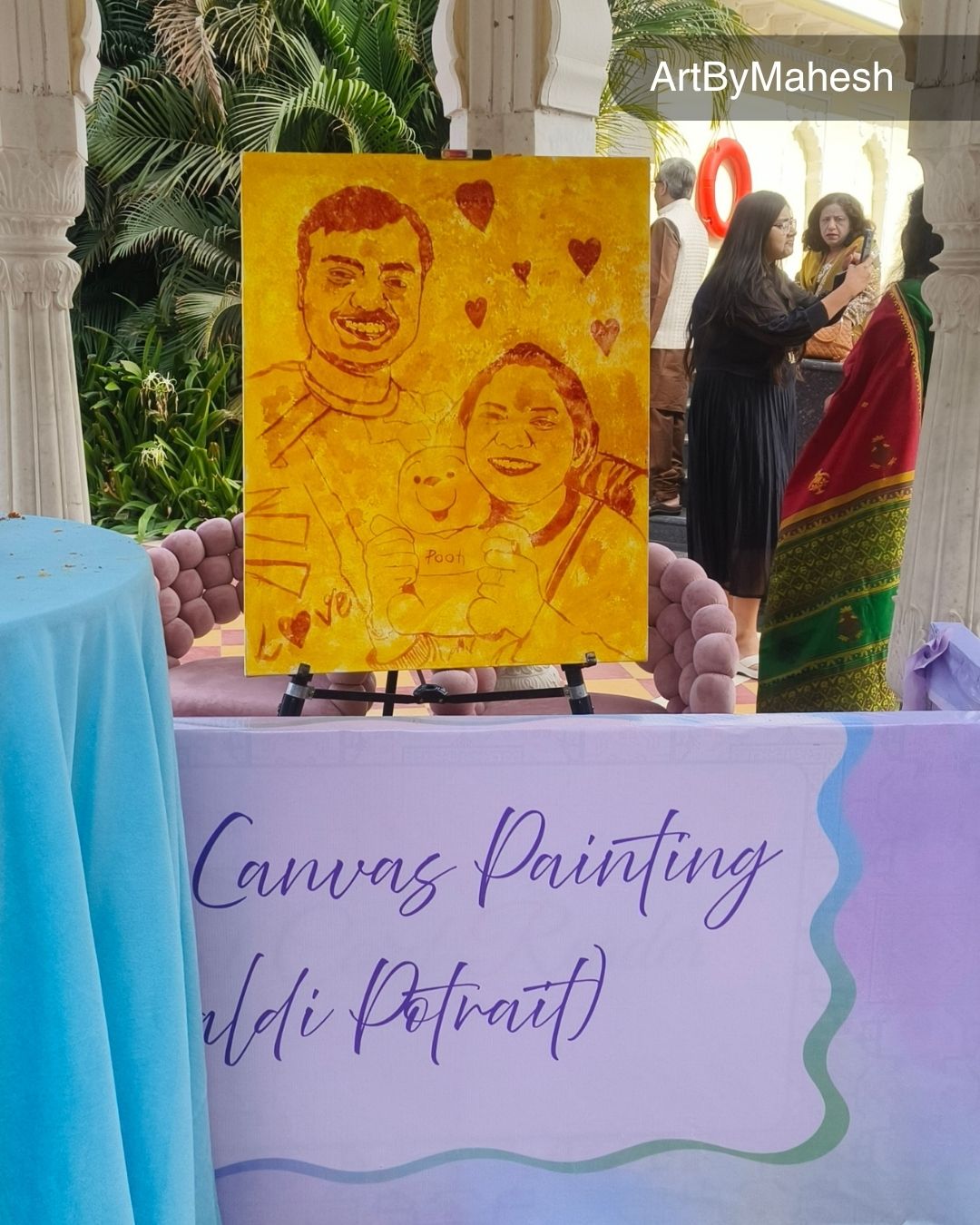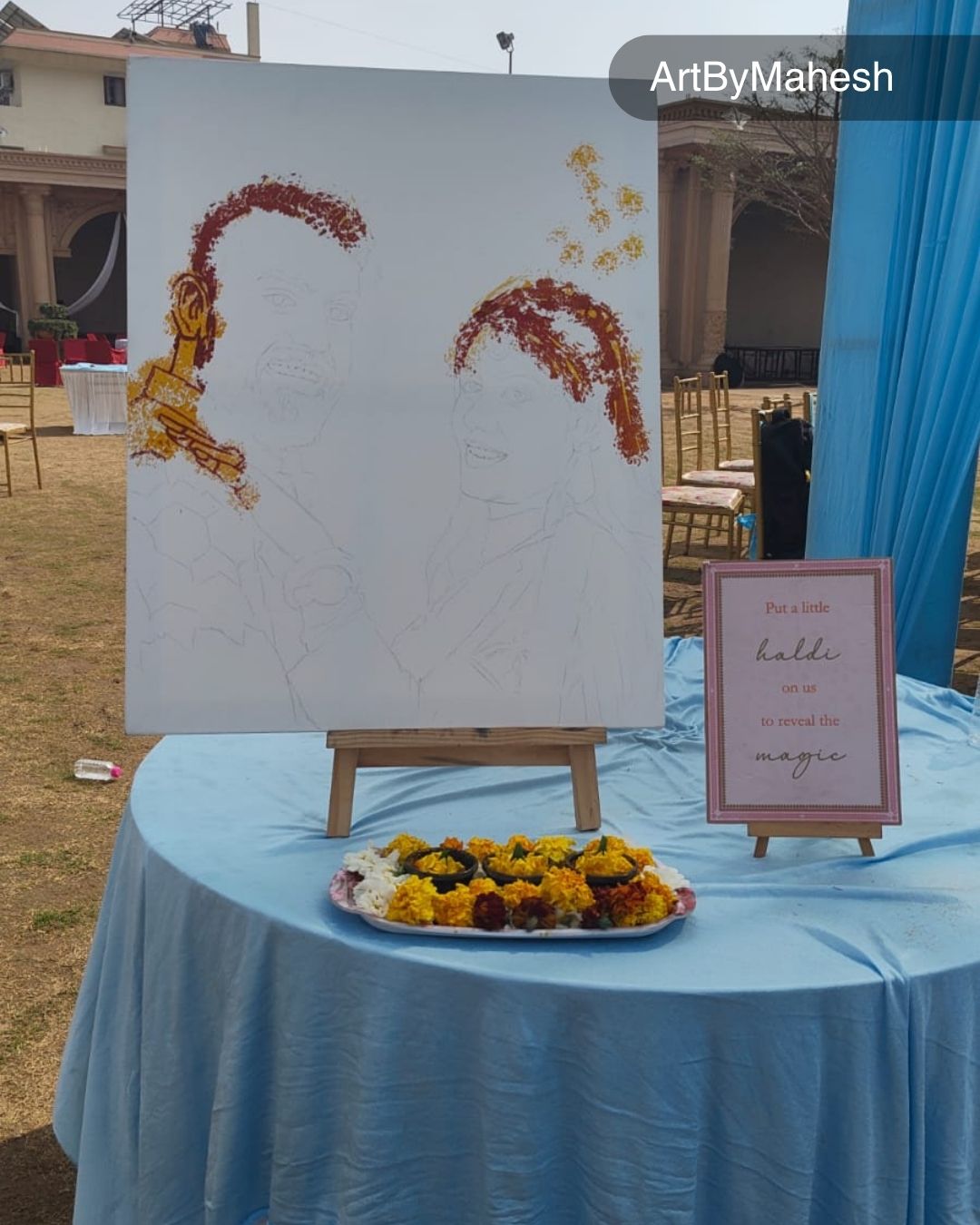 Make your Haldi ceremony, wedding celebration or luxury event in Jaipur truly magical with live Magic Portrait Art by professional artist Mahesh Kumawat – ArtByMahesh. Create unforgettable emotional moments as a beautiful portrait is revealed artistically, delighting guests and adding premium entertainment value to your celebration.