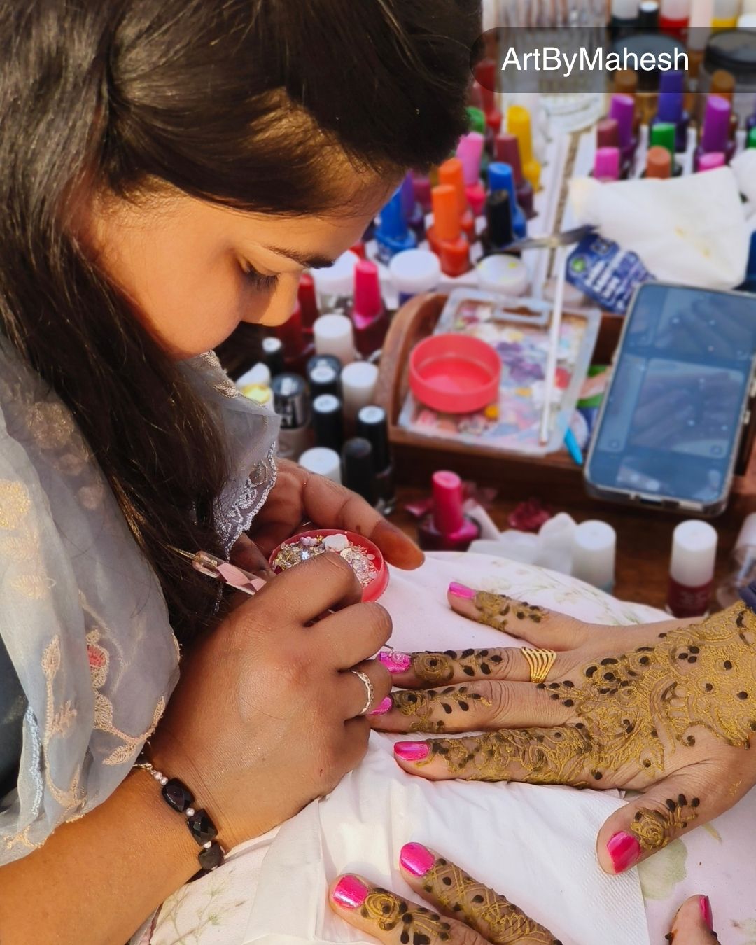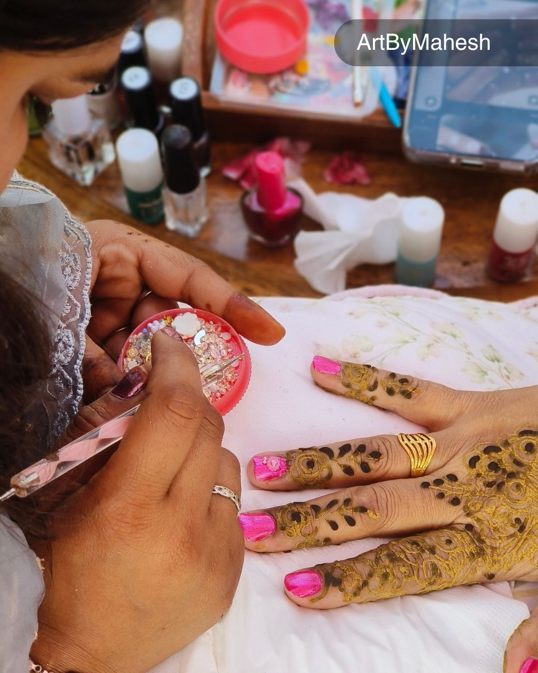 Known for creative nail paint art, professional coordination and stylish nail polish designs, ArtByMahesh is a trusted nail artist service for weddings, private parties and luxury events.