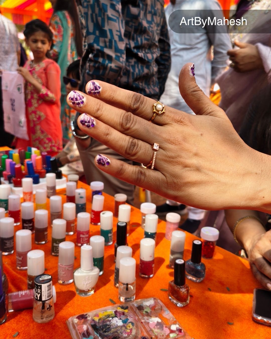 Make your wedding, haldi function, birthday party or corporate event in Jaipur more stylish with trendy Nail Paint Art by professional event artist Mahesh Kumawat – ArtByMahesh. Creative nail polish designs, female artist team support and modern nail art styles add fashion and attraction to every celebration.