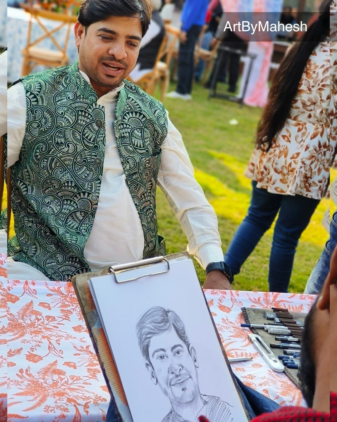 Make your wedding, corporate event, exhibition or private celebration in Jaipur truly unforgettable with live hand-drawn portraits by Mahesh Kumawat – ArtByMahesh. Delight your guests with interactive artistic entertainment and personalised keepsake portraits.