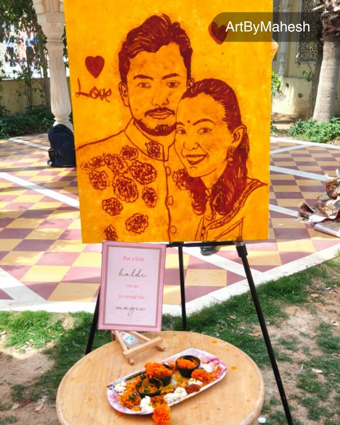 Make your Haldi ceremony, wedding celebration or luxury event in Jaipur truly magical with live Magic Portrait Art by professional artist Mahesh Kumawat – ArtByMahesh. Create unforgettable emotional moments as a beautiful portrait is revealed artistically, delighting guests and adding premium entertainment value to your celebration.