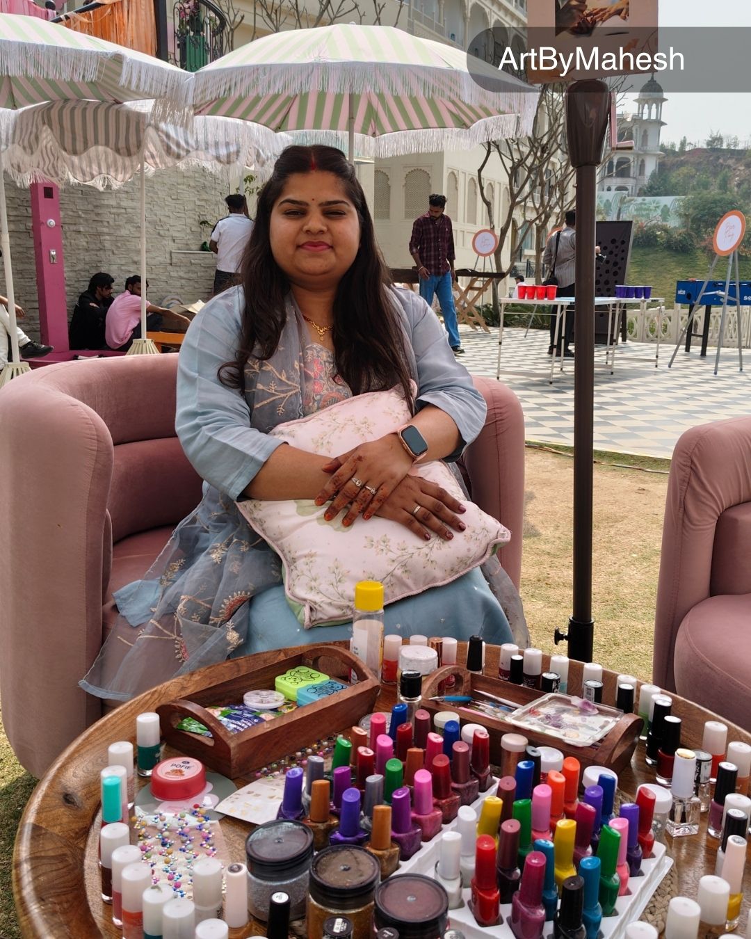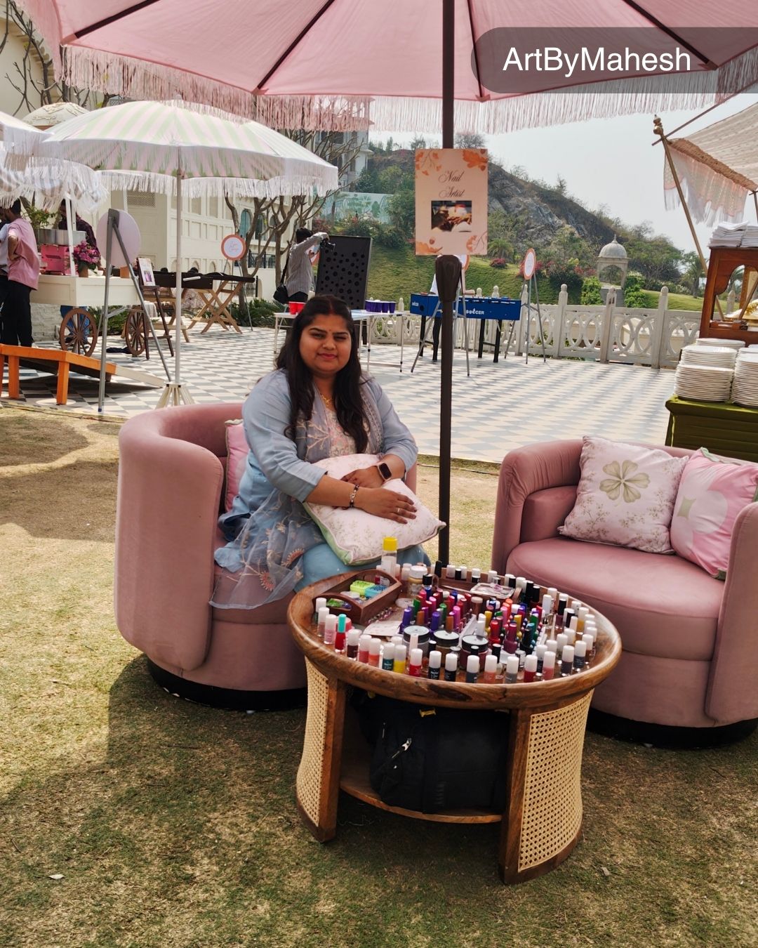 Make your wedding, haldi function, birthday party or corporate event in Jaipur more stylish with trendy Nail Paint Art by professional event artist Mahesh Kumawat – ArtByMahesh. Creative nail polish designs, female artist team support and modern nail art styles add fashion and attraction to every celebration.