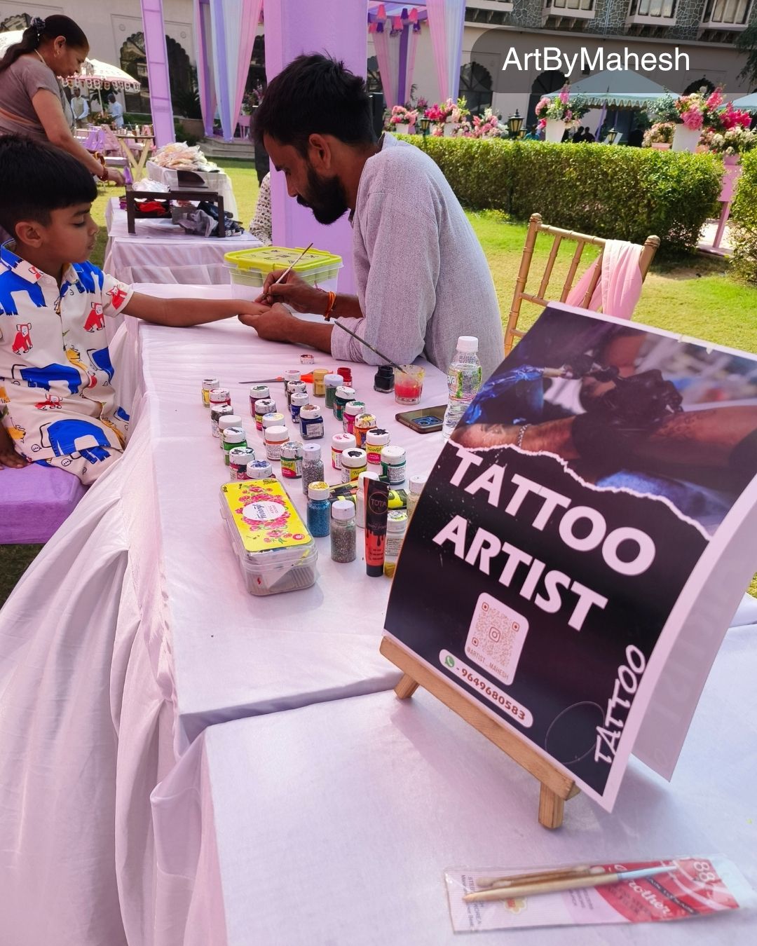 Through ArtByMahesh, guests can choose from a wide range of modern, traditional and customized tattoo patterns including floral designs, symbols, minimal art, neon glow tattoos and premium glitter tattoos. These beautiful designs add excitement and charm to every celebration while giving guests a unique keepsake experience.